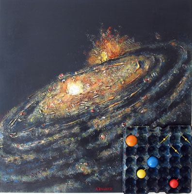 Acryl auf Holz, Spachtel, Collage 80 x 80 cm