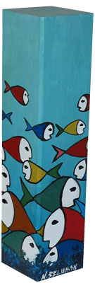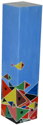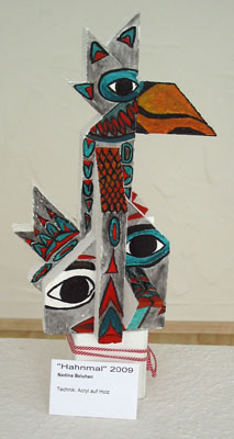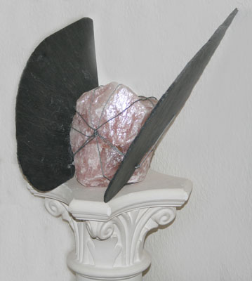 Draht auf Holz, kalte Keramik, Acryl 40 x 12 cm