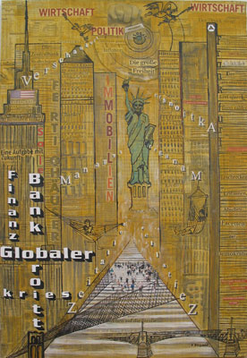 Zeitung auf Holz, Acryl, Collage 60 x 90 cm