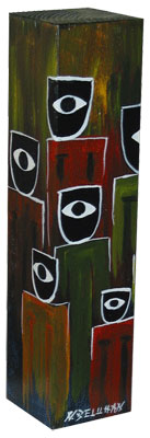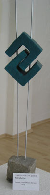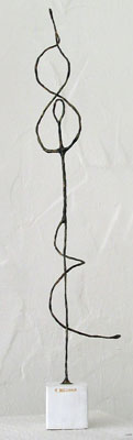 Draht auf Holz, kalte Keramik, Acryl 40 x 12 cm